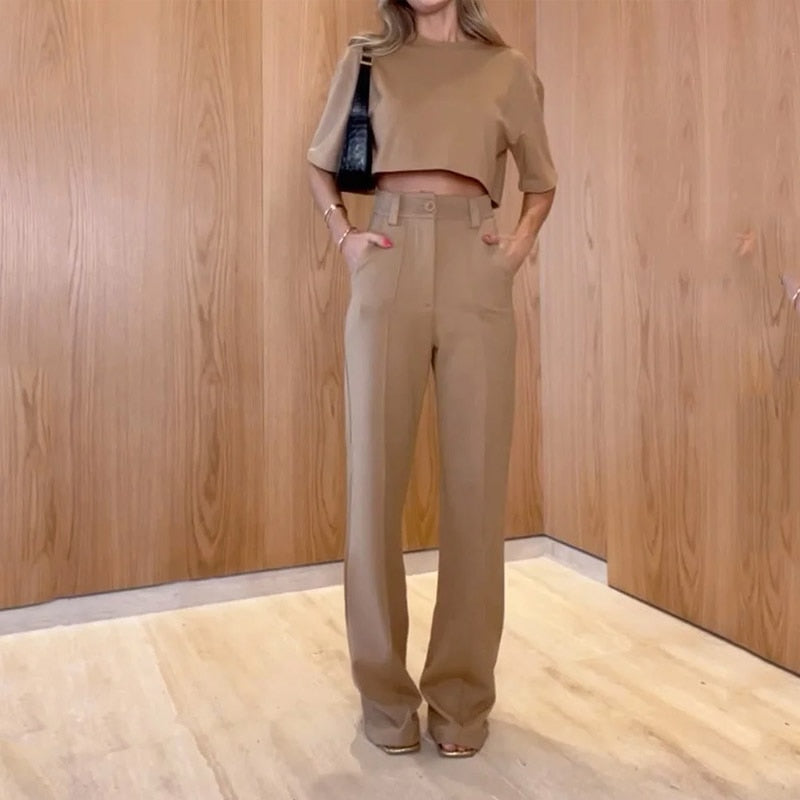 O Conjunto Alyssa é uma roupa ideal para todas as ocasiões. Super usual, o conjunto se destaca com seu design elegante e moderno. Crie um look versátil e atemporal com o Conjunto Alyssa.