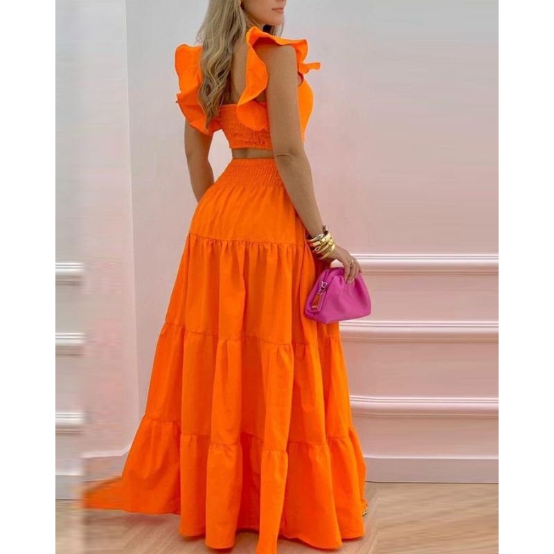Este Conjunto Maeve com fecho de elástico é ideal para looks casuais e modernos. Feito com tecido leve e macio, é perfeito para ocasiões especiais e traz toda a tendência da moda para o seu guarda-roupa.