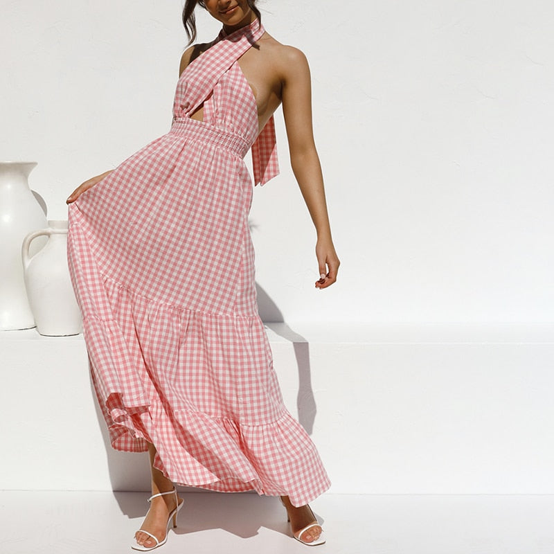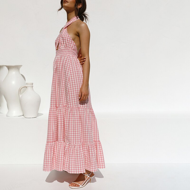 O Vestido Amora oferece um estilo elegante e refinado para o próximo verão. Ele chega até a altura do tornozelo e apresenta um decote frente única. Esta peça é ideal para ocasiões como casamentos e jantares formais.